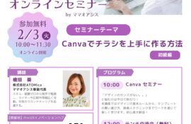 初心者歓迎!Canvaでチラシを上手に作る方法 〜女性のためのオンラインセミナー〜 「自分の活動をもっと広めたいけれど、チラシを作るのが苦手」「デザインのセンスがないから、いつも時間がかかってしまう」 そんなお悩みはあり […]