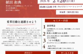 共創のきっかけや新たなネットワークを 「KUMAMOTO UX MEET@」は、共創のきっかけを生み出すカジュアルな交流の場です。テーマをもとに地域内外の多様な人が繋がり、分野の枠を超えたシナジーや新たな取り組みが生まれ […]