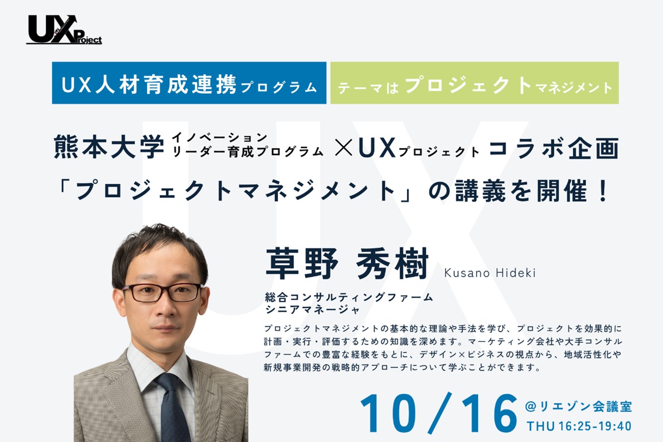 熊本大学イノベーションリーダー育成プログラム×UXプロジェクトコラボ企画!「プロジェクトマネジメント」講座を10月16日に開催!