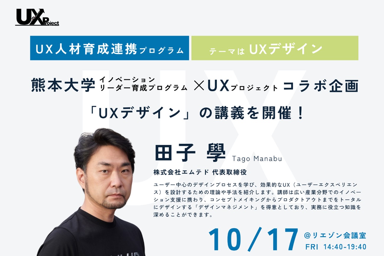 熊本大学イノベーションリーダー育成プログラム×UXプロジェクトコラボ企画!「UXデザイン」講座を10月17日に開催!