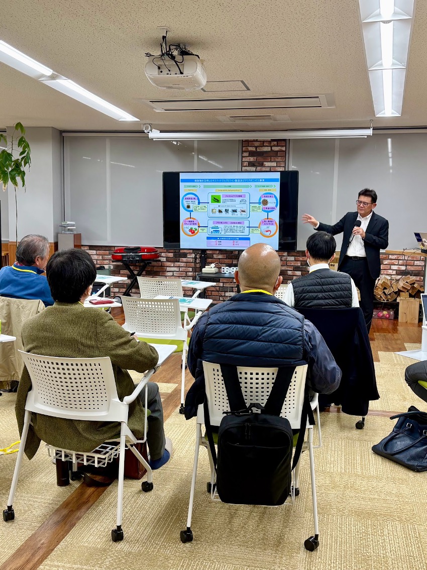 講演では、世界的なタンパク質危機が懸念される中、地域の未利用資源を活用した次世代の循環型ビジネスの全容が語られました。