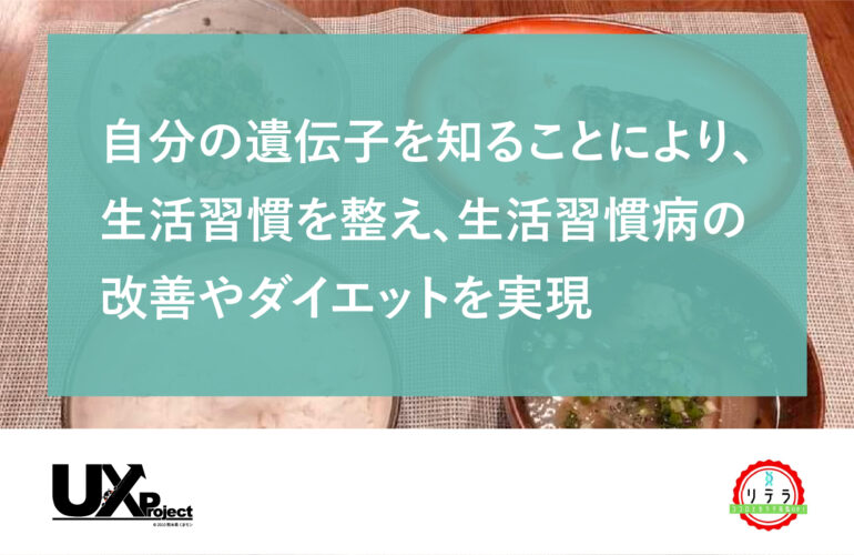 20歳以上の健康な成人10人に対し、遺伝子検査キットを使って自分の遺伝子に合う食材や食べる順番を知ると共に、専門スタッフによる食育プログラムを個々の遺伝子に合う方法で実施して、実証前後での身体の変化を計測。
